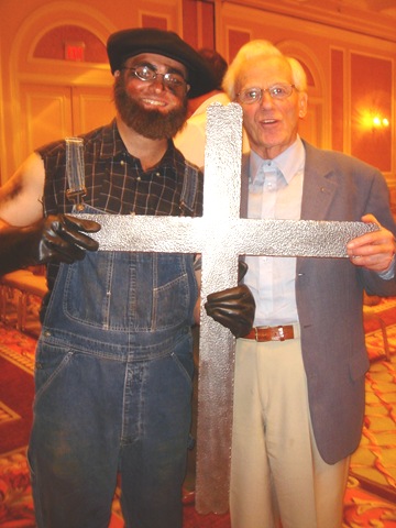 Kristoffer was a Blacksmith at a donor event through his work. Above, Kristoffer is with Brother Andrew, who was himself a blacksmith in his early years just like his father was. Also, the cross you see was made by a real blacksmith. This was the first blacksmith I called, who was a Christian and said he would make the cross for this event for free!